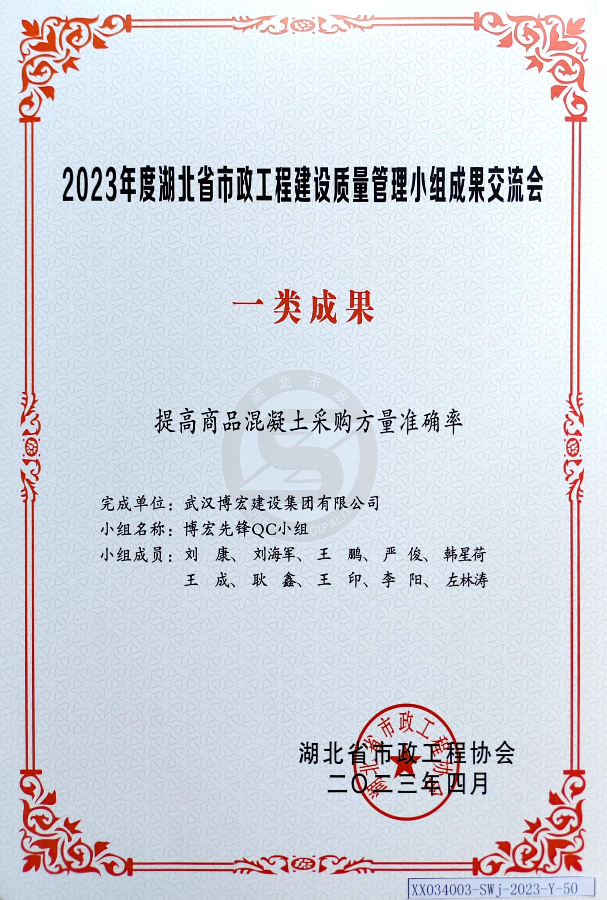 2023年度湖北省市政工程建設(shè)質(zhì)量管理小組成果交流會(huì)-一類(lèi)成果