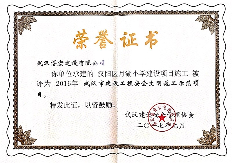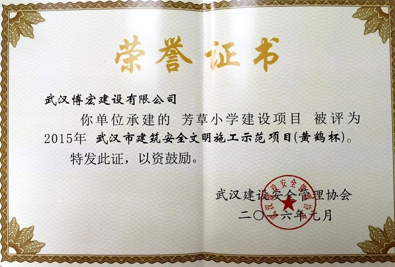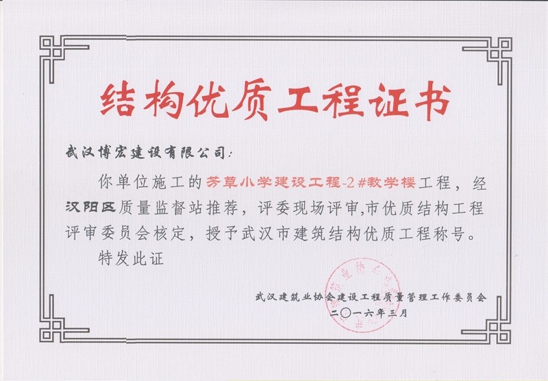 芳草小學-1#教學樓結構優(yōu)質工程證書