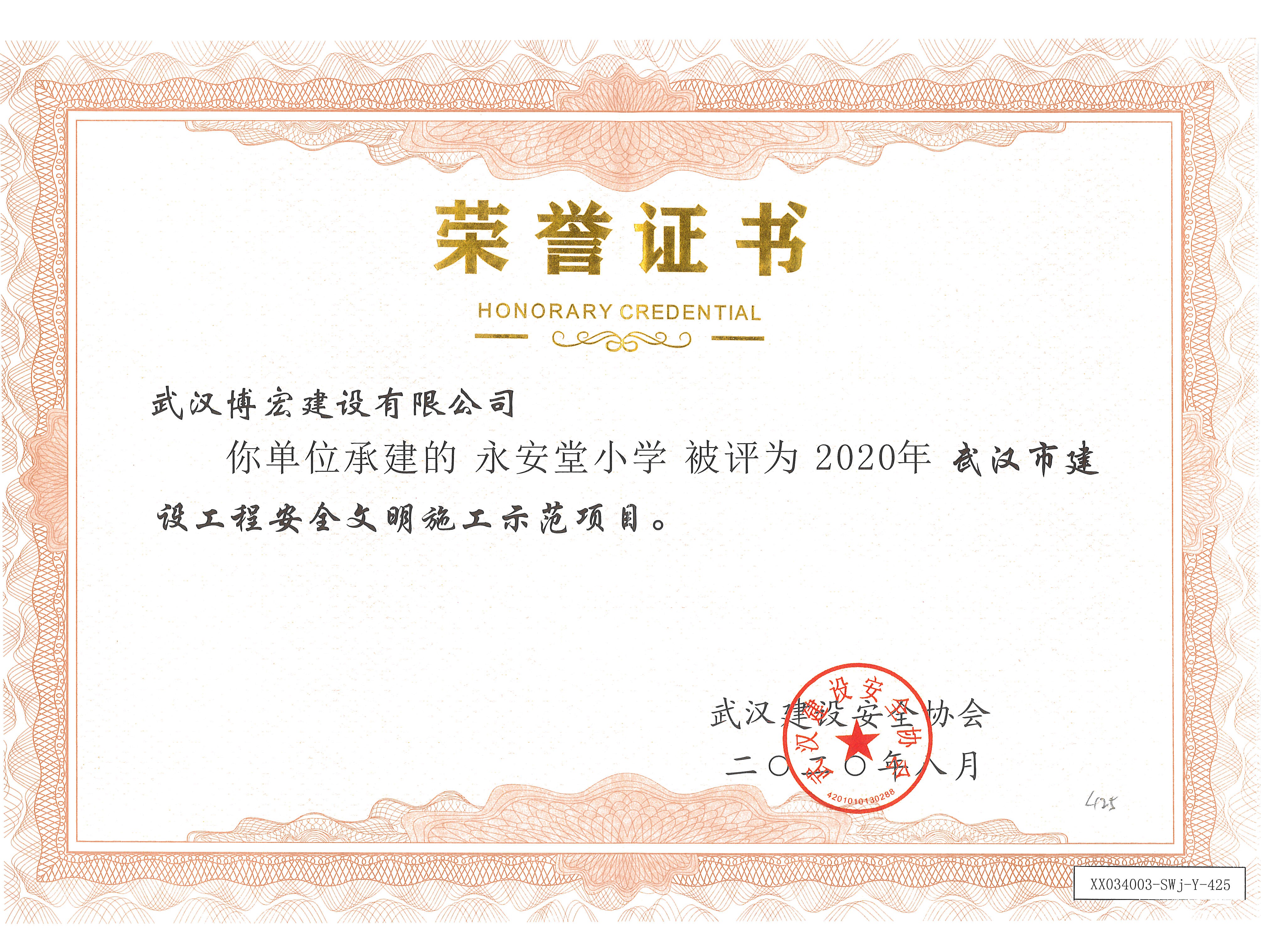 2020年武漢市建設(shè)工程安全文明施工示范項(xiàng)目(國博三小)