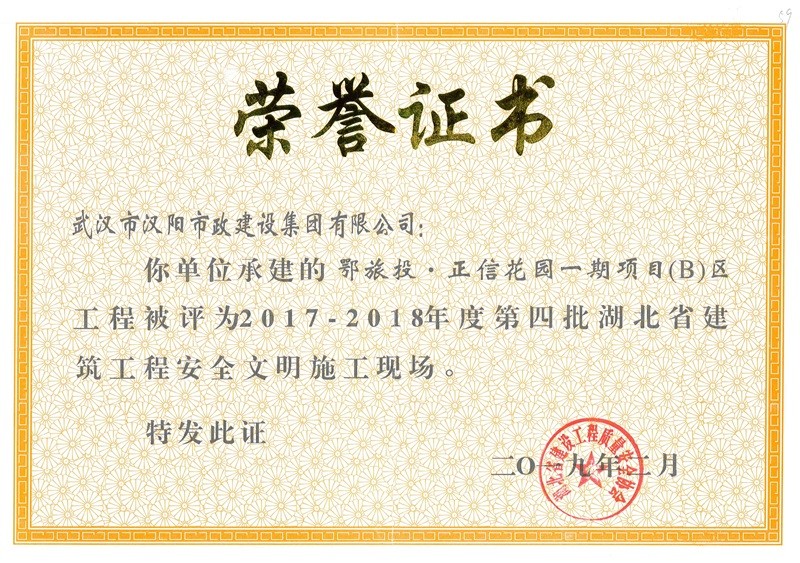 2017-2018年度第四批湖北省建筑工程安全文明施工現(xiàn)場(chǎng)(正信花園)