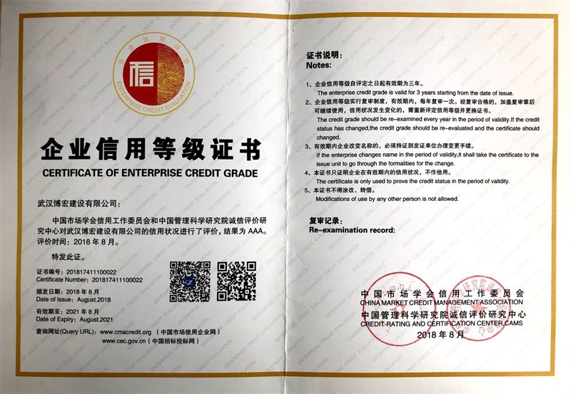 中國(guó)建筑協(xié)會(huì)3A信用等級(jí)證書(2019年1月)