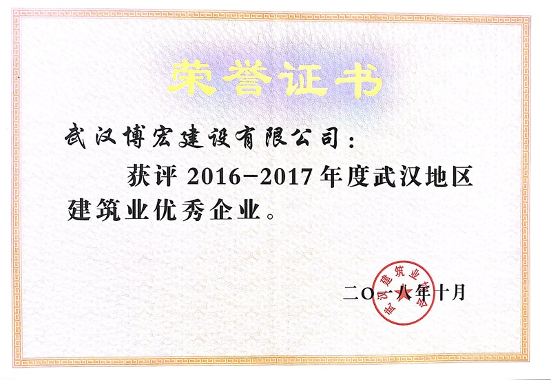 2016-2017年度武漢地區(qū)建筑業(yè)優(yōu)秀企業(yè)