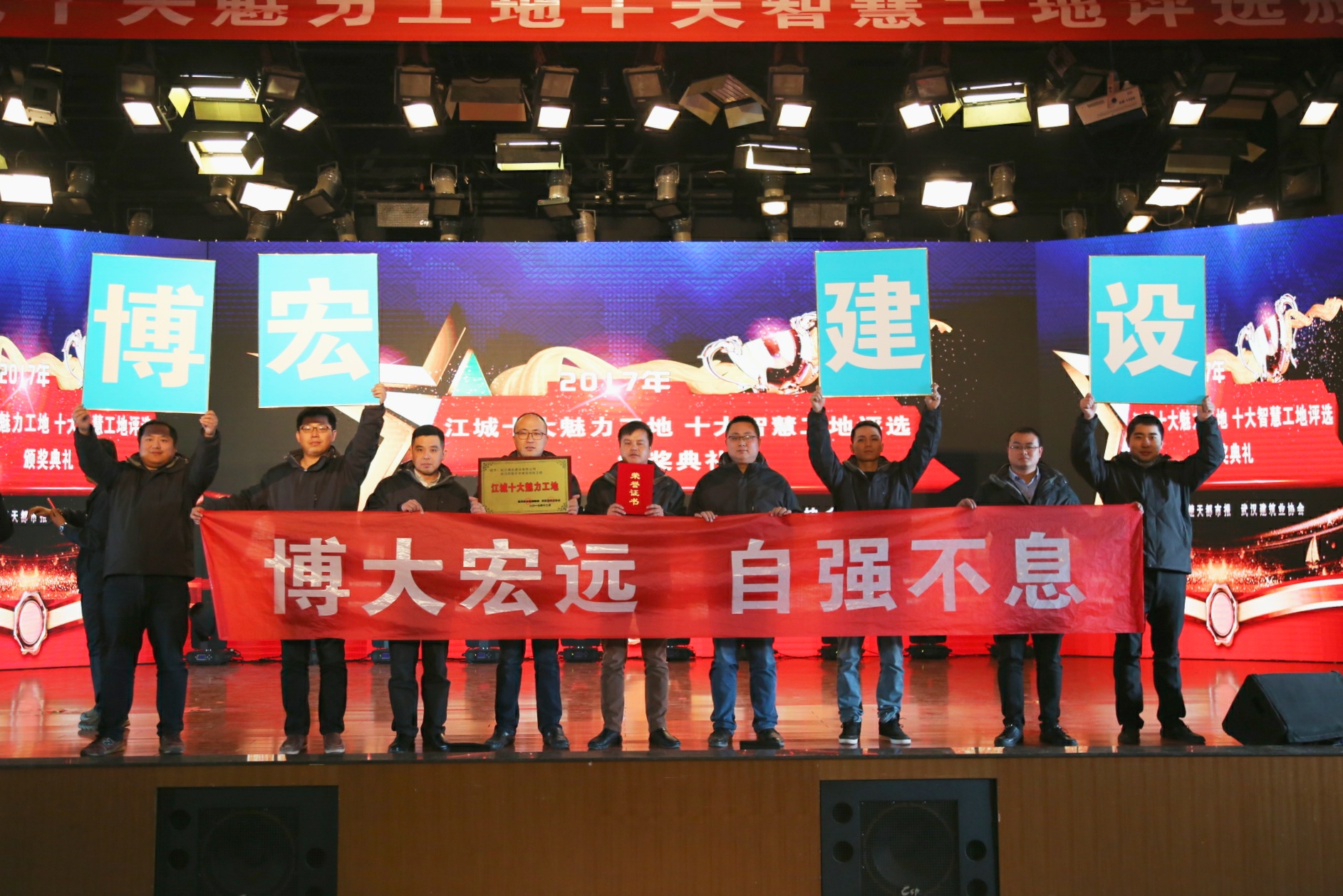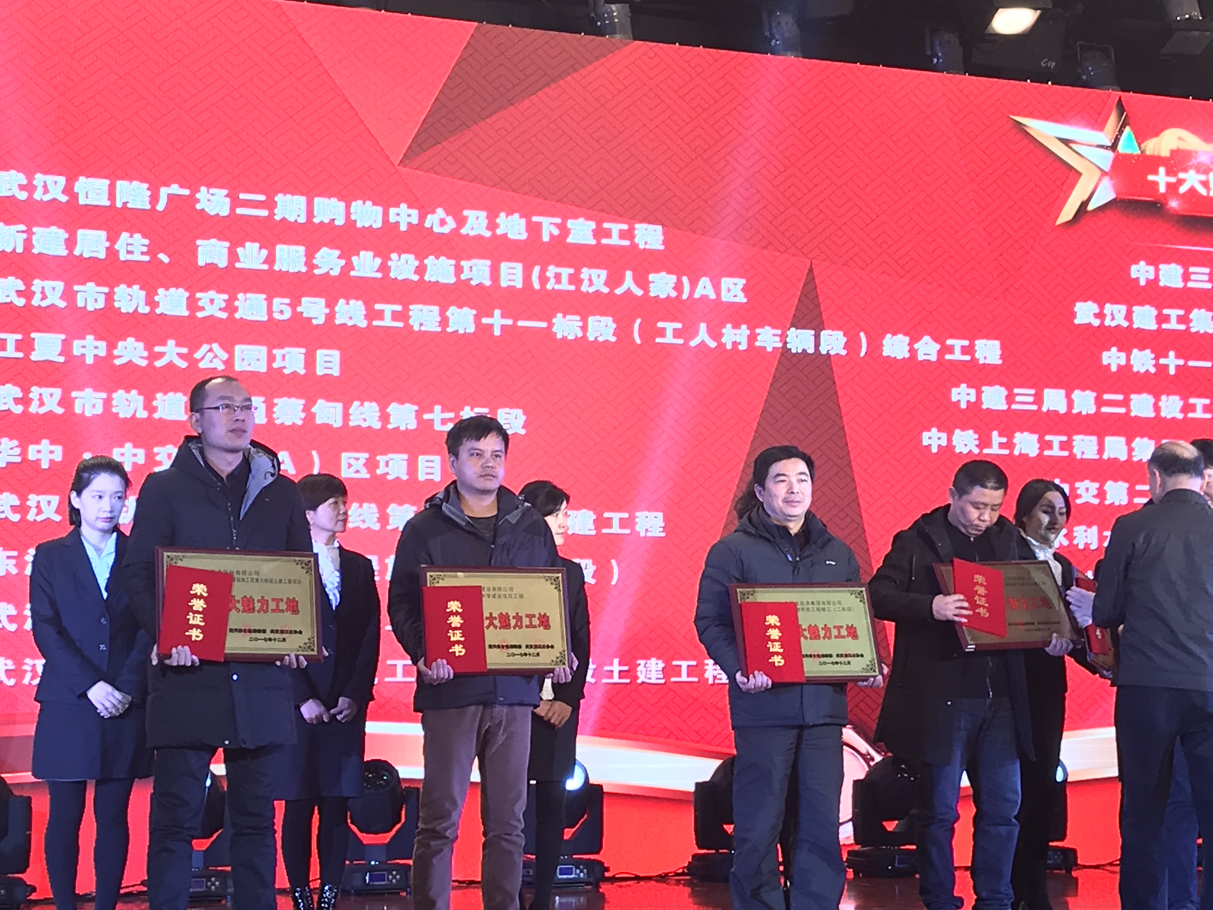 2018年1月7日下午,2017年度“江城十大魅力工地、十大智慧工地”評選活動頒獎典禮在楚天傳媒大廈隆重召開,湖北省總工會、武漢市總工會、武漢建筑業(yè)協(xié)會、湖北日報、楚天都市報等相關單位領導出席典禮,并為武漢四新中學建設項目工程等獲獎工程頒發(fā)獎牌與榮譽證書。