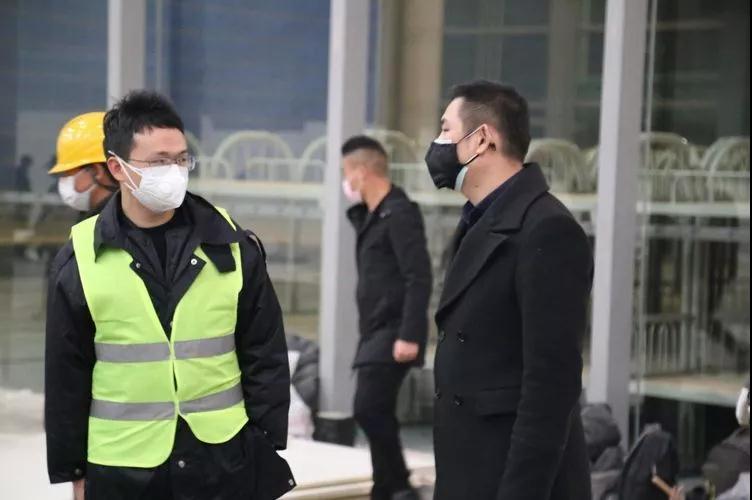 張光(右)在“火神山”項(xiàng)目現(xiàn)場(chǎng)協(xié)調(diào)施工