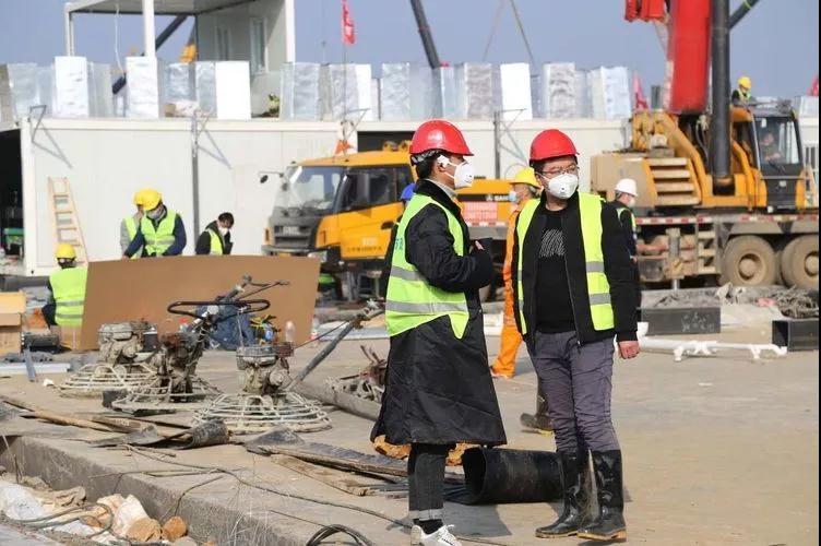 陶文藝(右)在“火神山”項(xiàng)目現(xiàn)場(chǎng),