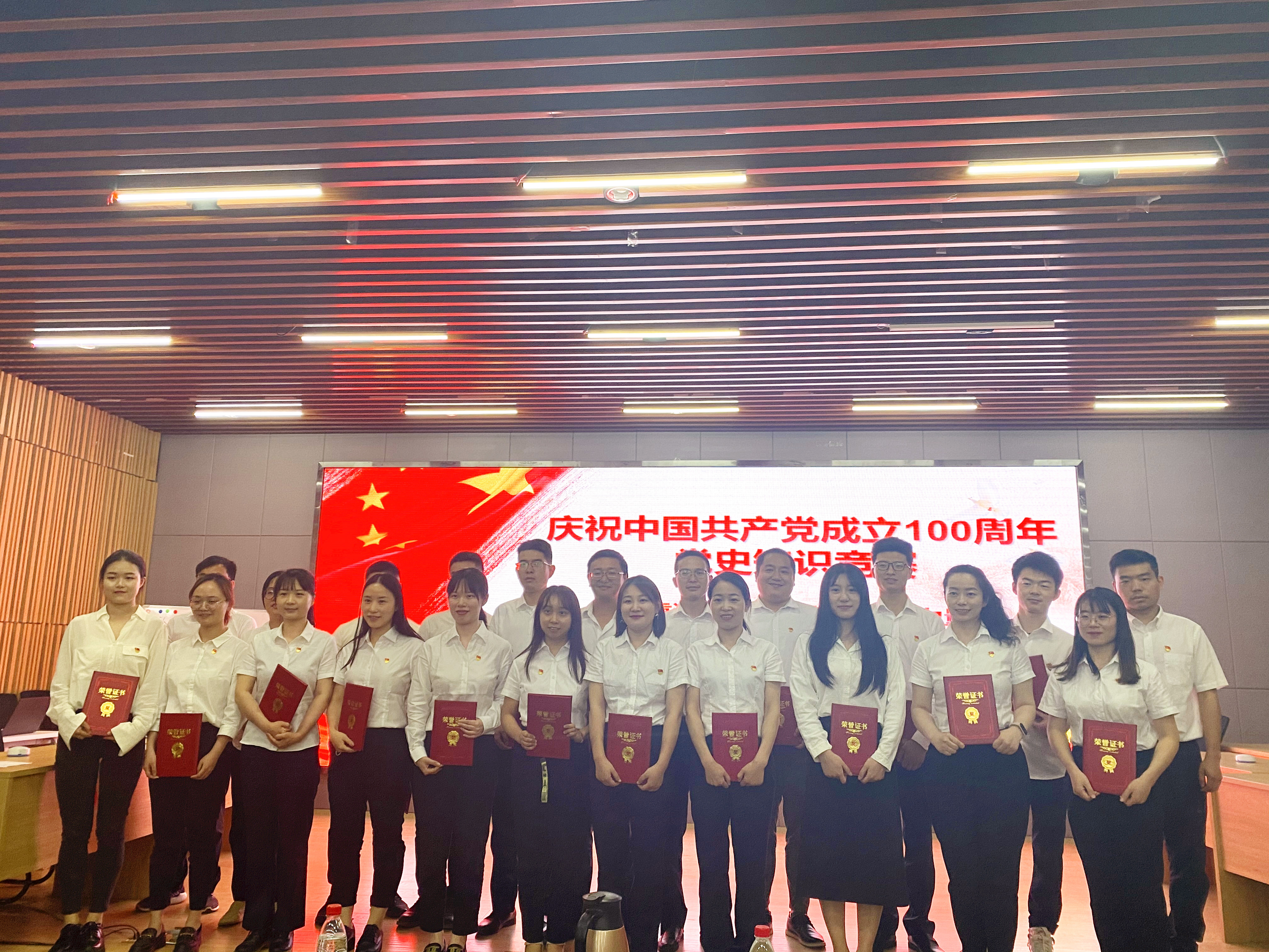 6月3日下午2:30,漢陽市政“慶祝中國共產黨成立100周年”黨史知識競賽活動順利舉行,由公司項目一線職工羅柯、范秋怡組成的博宏代表隊通過激烈角逐,在此次比賽中榮獲第一名!