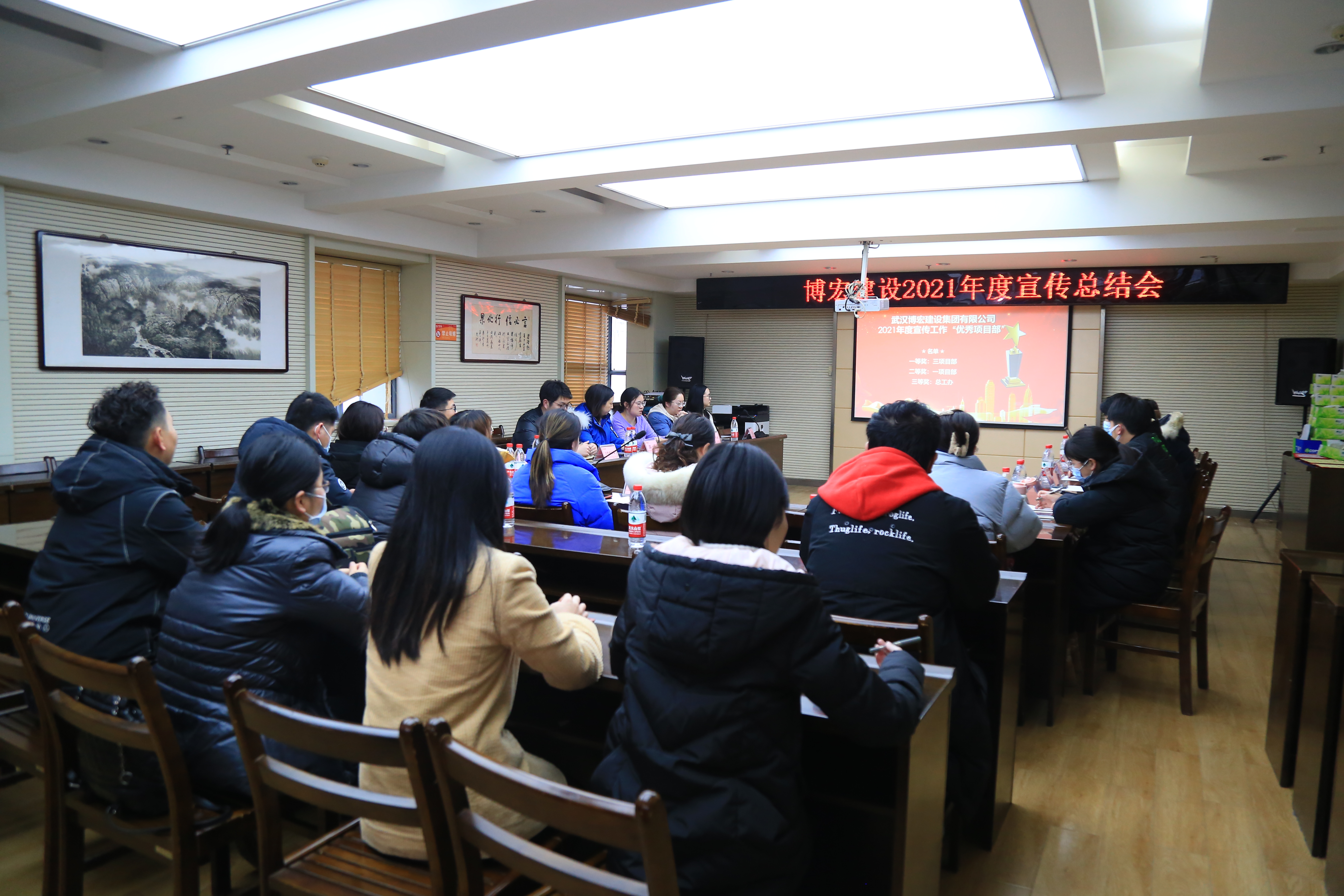 對(duì)2021年度宣傳工作方面表現(xiàn)突出的團(tuán)體與個(gè)人進(jìn)行表彰,三項(xiàng)目部榮獲博宏建設(shè)2021年度宣傳工作優(yōu)秀項(xiàng)目一等獎(jiǎng),一項(xiàng)目部榮獲博宏建設(shè)2021年度宣傳工作優(yōu)秀項(xiàng)目二等獎(jiǎng),總工辦榮獲博宏建設(shè)2021年度宣傳工作優(yōu)秀部門三等獎(jiǎng),三項(xiàng)目部李飛獲得2021年度“宣傳之星”。