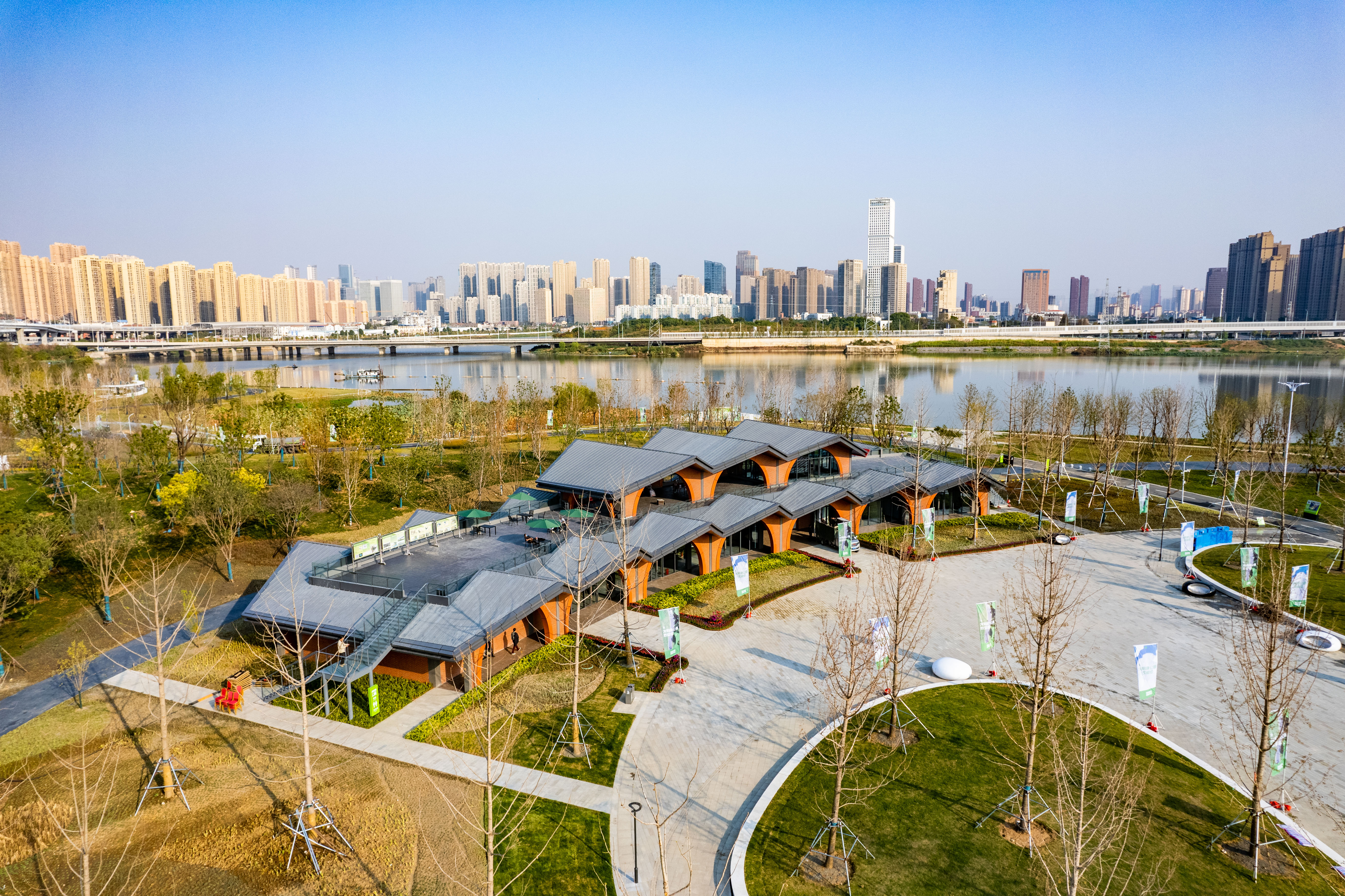 11月7日,龍陽半島園區(qū)在萬眾期待中閃亮登場。龍陽半島項目是整個龍陽湖公園“一環(huán)、三岸、五園、十八景”的一園。其中,園區(qū)內最引人注目的龍陽半島一級驛站由博宏建設集團所承建,驛站位于半島核心位置,建筑總體上呈扇形,面朝湖面展開,總建筑面積998.12㎡背面為背景林,前臨休憩廣場開敞草坪和一級景觀廊橋是全園的景觀核心。