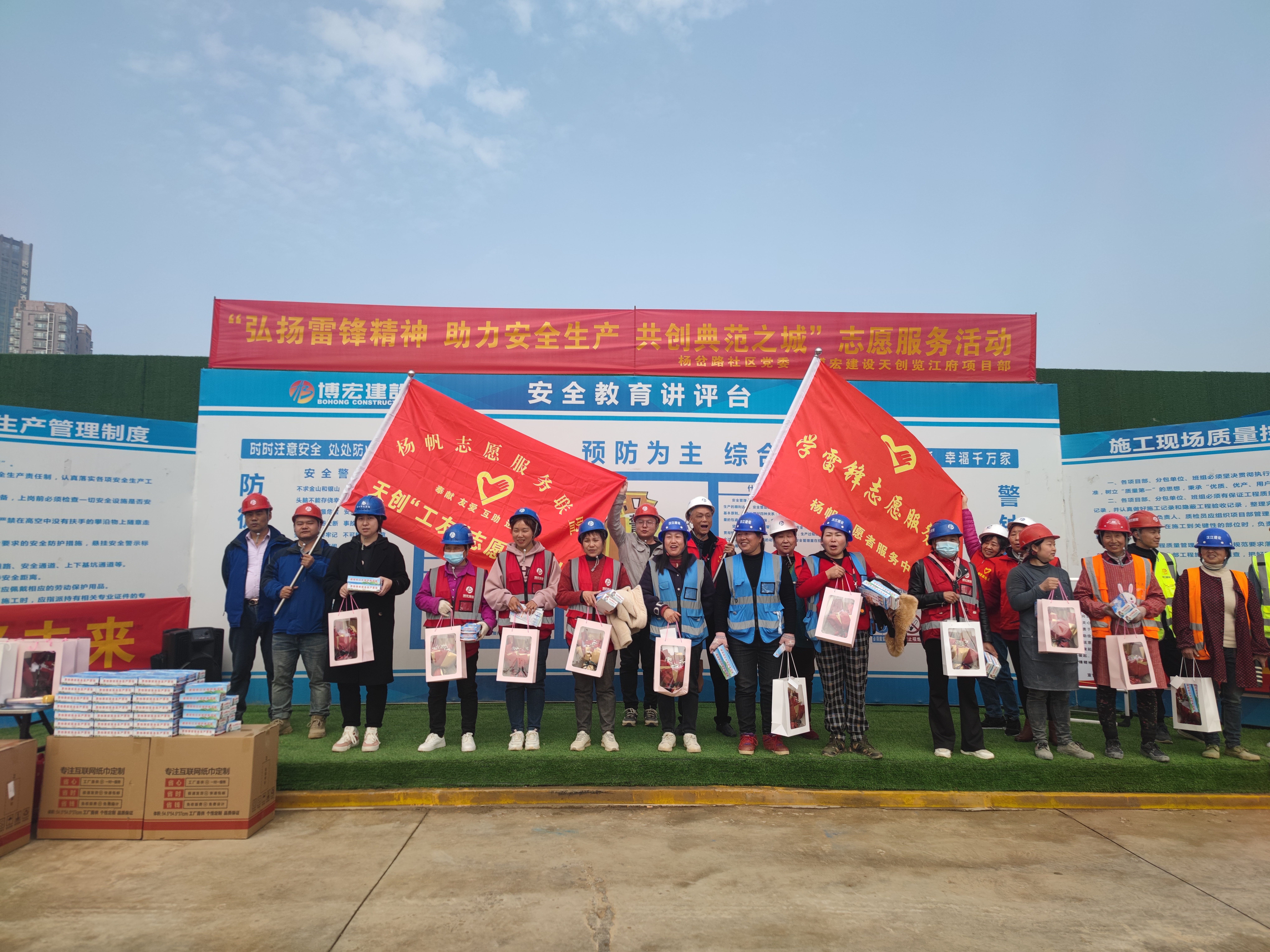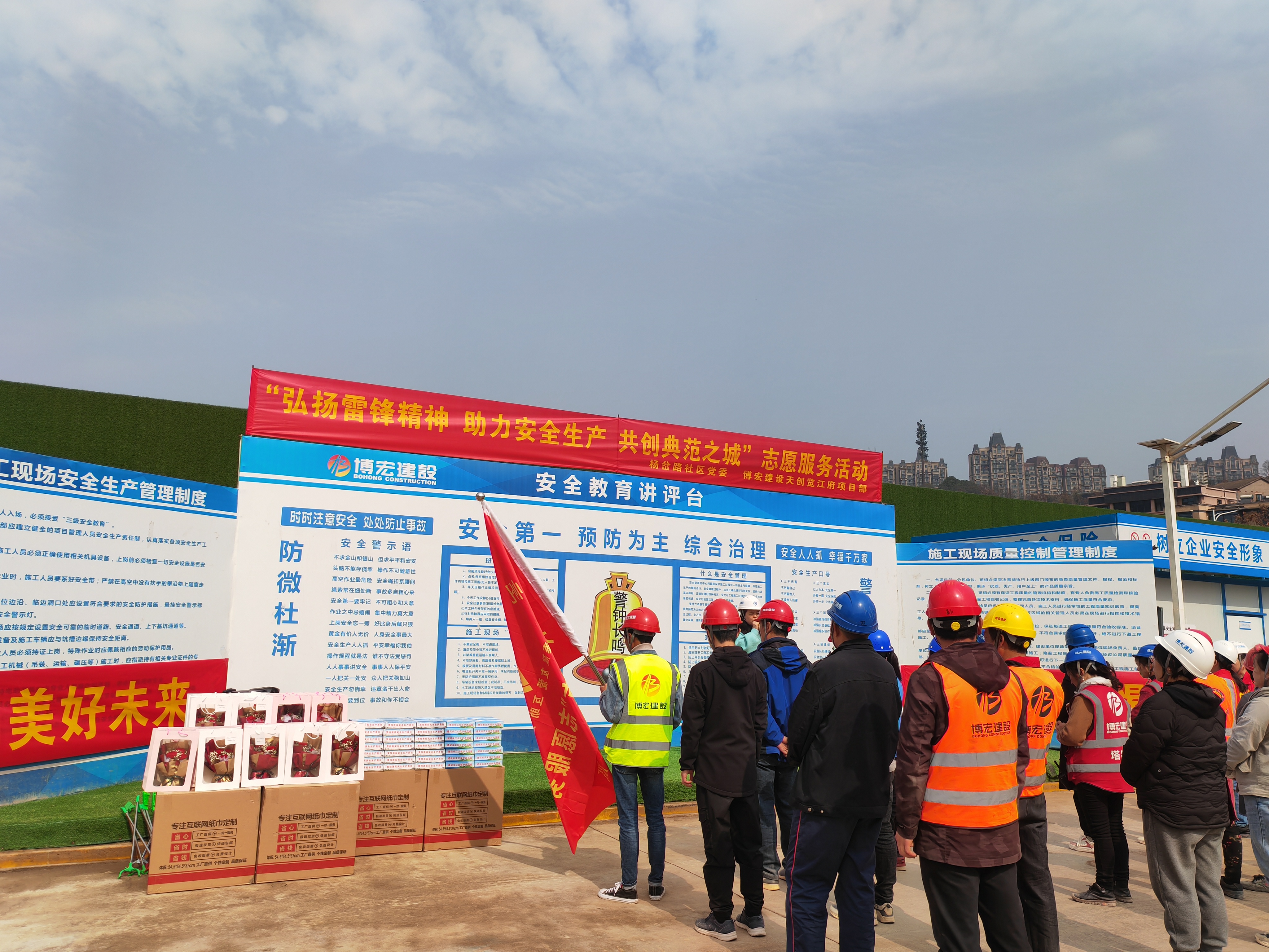 在第60個“學(xué)雷鋒紀(jì)念日”和“三八”女神節(jié)來臨之際,博宏建設(shè)集團(tuán)天創(chuàng)覽江府項目部聯(lián)合楊岔路社區(qū)黨委、楊帆志愿者服務(wù)中心開展“弘揚雷鋒精神,助力安全生產(chǎn),共創(chuàng)典范之城”主題志愿服務(wù)活動,為堅守在項目一線辛勤耕耘的城市建設(shè)者們提供多種多樣的便民服務(wù)及健康義診,30余名職工代表、農(nóng)民工代表、社區(qū)“守心”醫(yī)療志愿者參加活動。