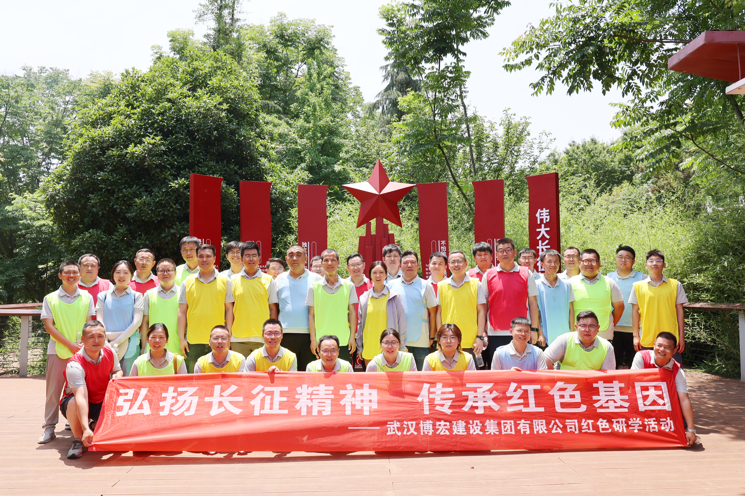 為追憶紅色足跡,感悟紅軍長(zhǎng)征艱難歷程,培養(yǎng)職工干部的民族自豪感和愛國主義精神,傳承紅色基因。5月25日,博宏建設(shè)集團(tuán)和武漢市漢陽控股集團(tuán)有限公司聯(lián)合開展以“弘揚(yáng)長(zhǎng)征精神,傳承紅色基因”為主題的紅色研學(xué)活動(dòng),前往漢陽區(qū)墨水湖公園重走長(zhǎng)征路紅色研學(xué)基地,重走紅色文化走廊,重溫那段革命先烈走過的光輝歲月。