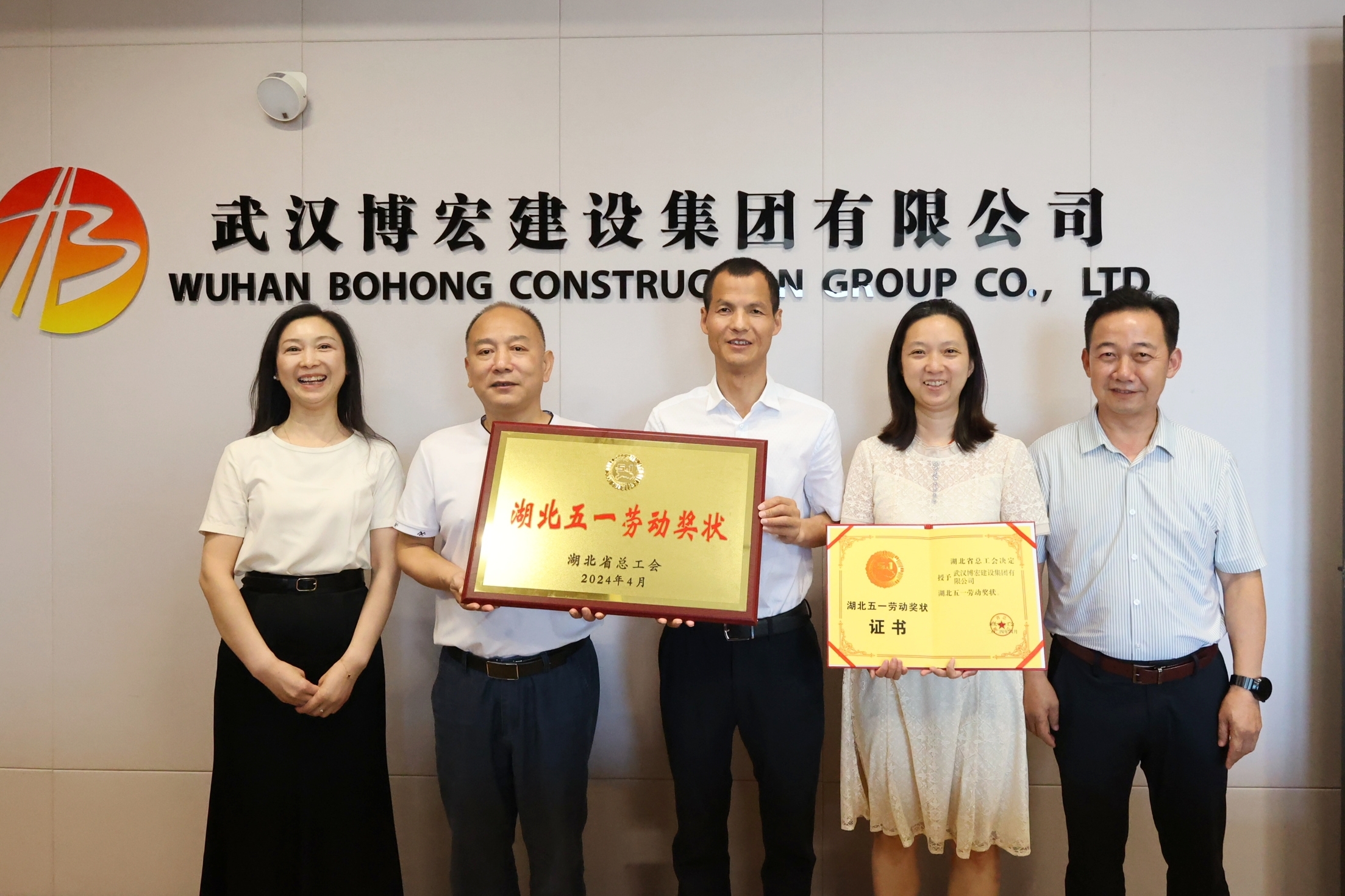 5月28日,武漢博宏建設(shè)集團有限公司榮獲“湖北五一勞動獎狀”授牌儀式在公司30樓會議室舉行。漢陽區(qū)總工會常務(wù)副主席李鐘為博宏建設(shè)集團頒發(fā)“ 湖北五一勞動獎狀 ”獎牌和證書。