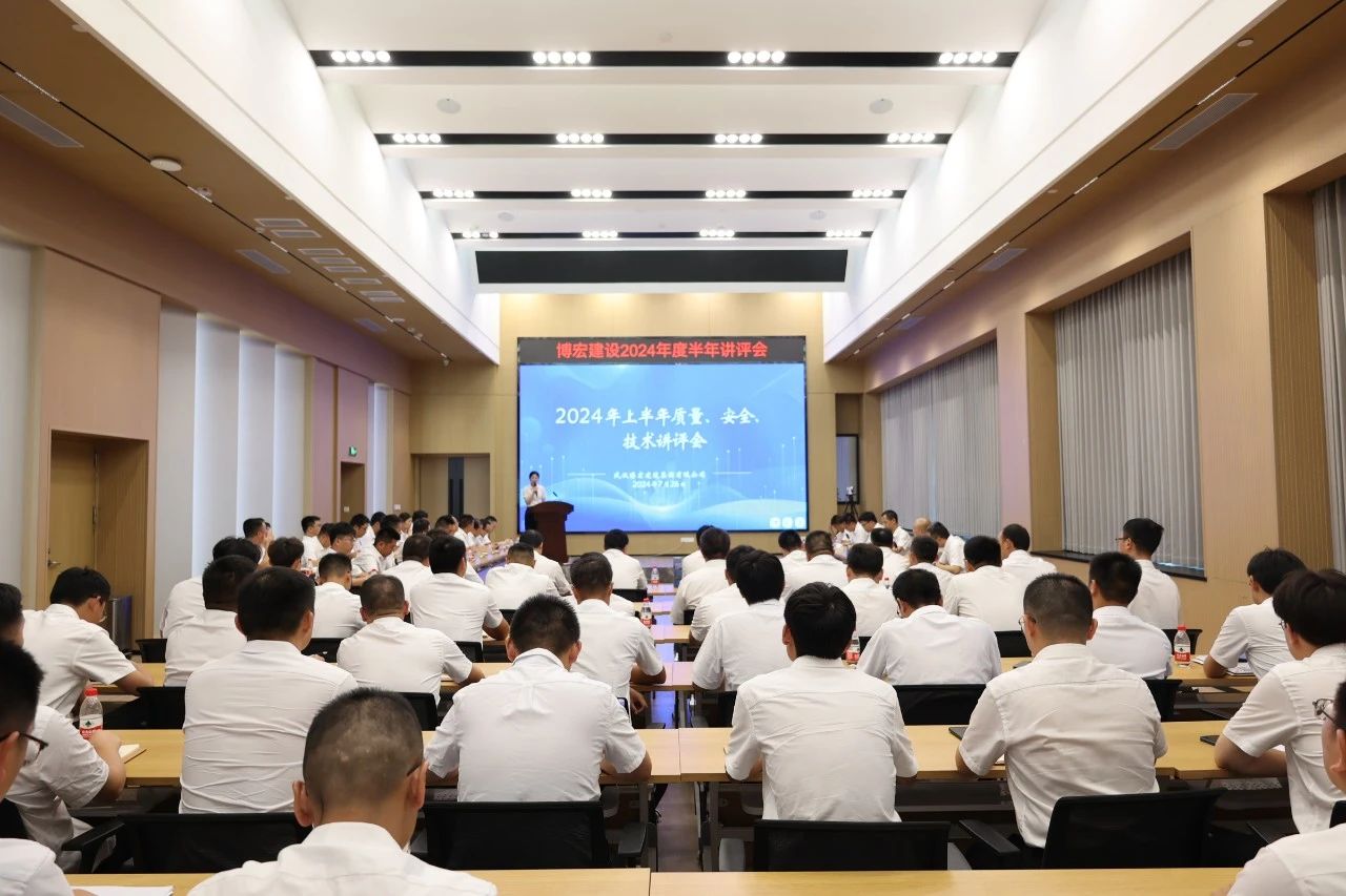 為切實提升項目管理水平,認真梳理項目現(xiàn)場優(yōu)秀做法,找準短板問題,明確后續(xù)工作重點要求。7月26日下午,博宏建設(shè)集團2024年上半年質(zhì)量、安全、技術(shù)講評會在公司31樓會議室召開。公司黨委班子、總助、部門負責(zé)人、項目經(jīng)理、技術(shù)崗、質(zhì)檢崗、安全崗、施工崗共計74人參加會議。會議由總工辦彭迎主持。