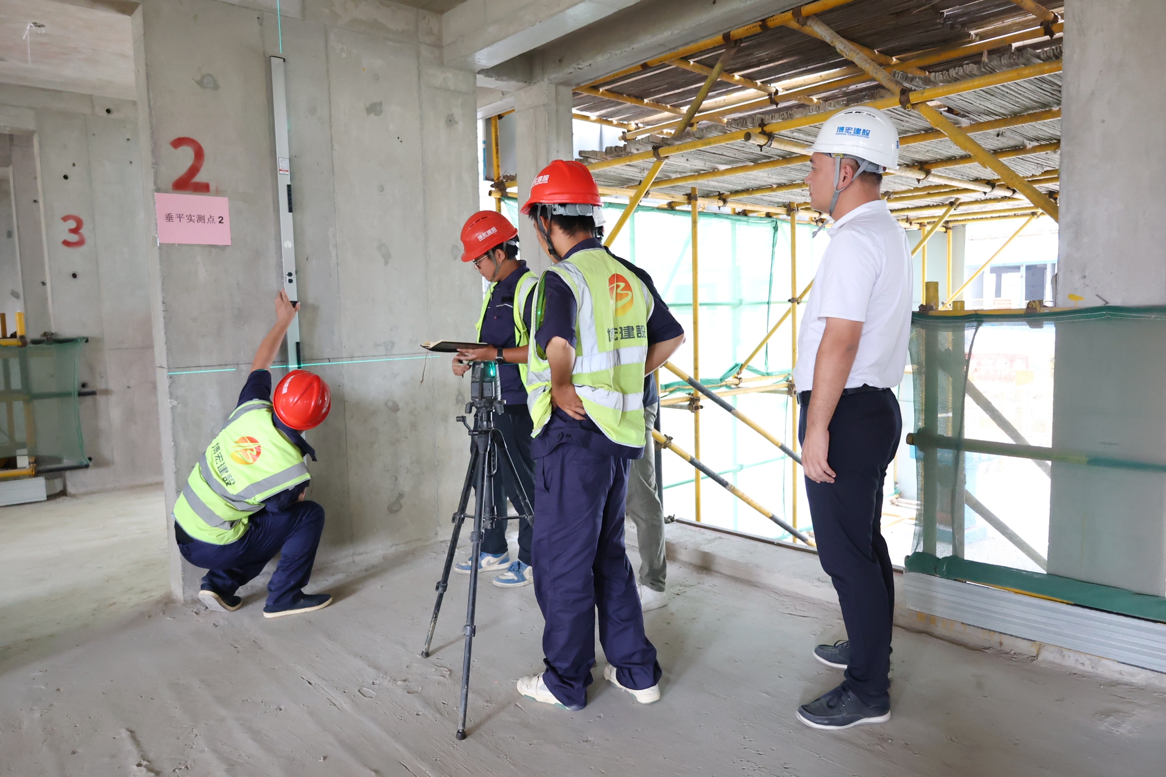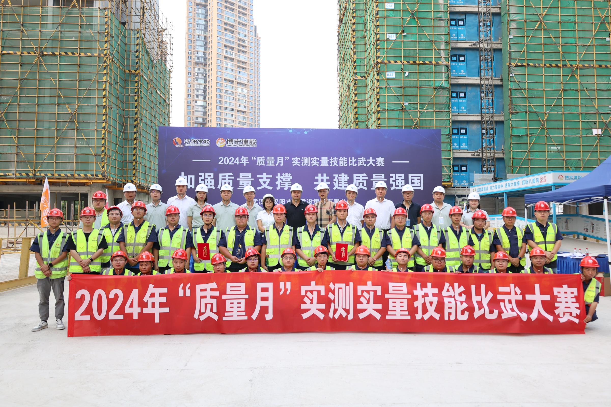 為響應(yīng)“質(zhì)量月”活動號召,增強(qiáng)全員質(zhì)量意識,促進(jìn)公司質(zhì)量全面提升,9月26日下午,博宏建設(shè)集團(tuán)2024年“質(zhì)量月”實測實量技能比武大賽在國博D12地塊項目順利舉行,博宏建設(shè)集團(tuán)總經(jīng)理助理李暉,質(zhì)量管理部部長姜昊,各項目部質(zhì)檢員、施工員共計五十余人參加活動。本次活動特別邀請到漢陽市政、深圳瑞捷、匯科檢測等單位專業(yè)代表作為裁判。