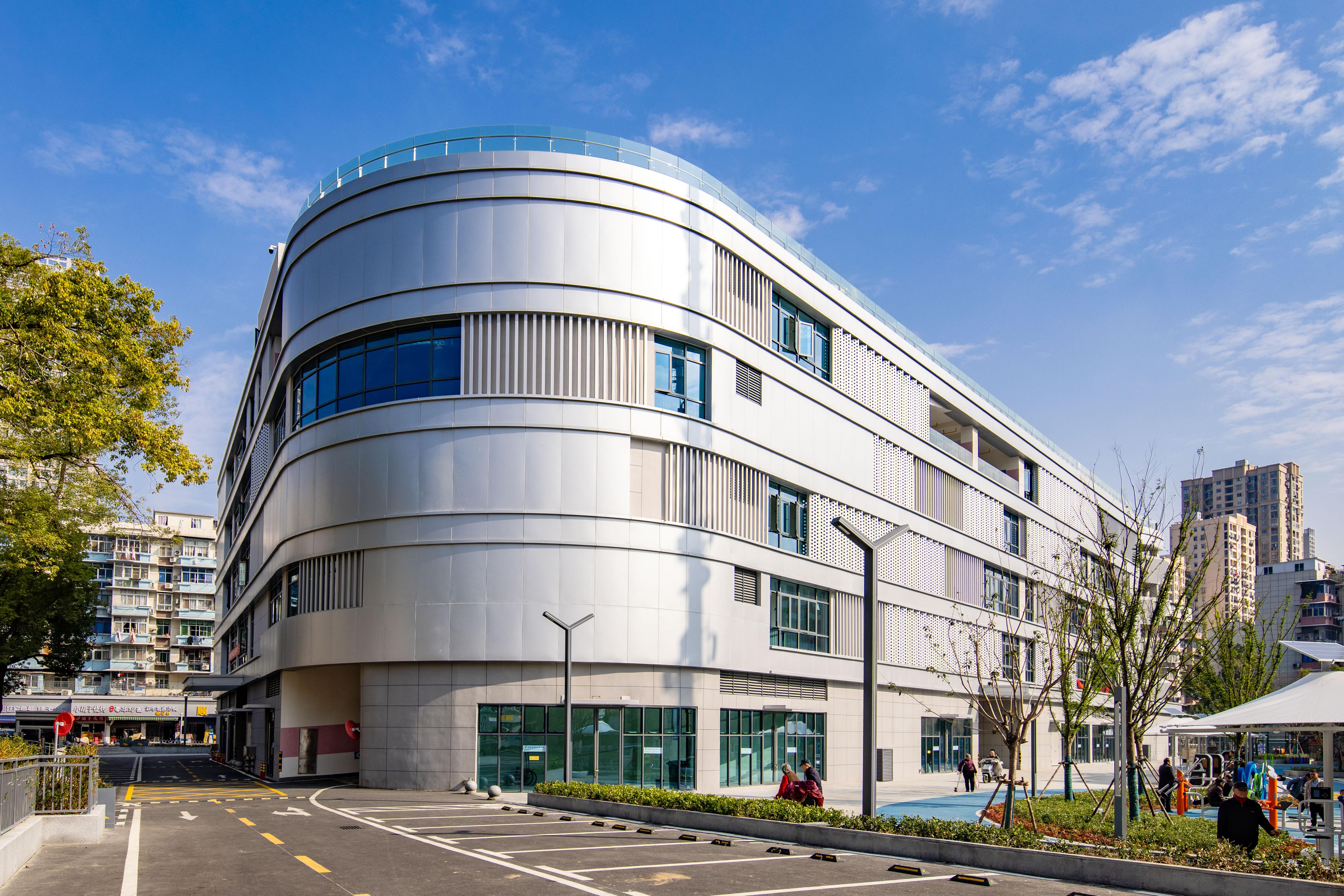 這棟別具一格的5層銀灰色綜合停車樓,不僅新增了450個(gè)停車位,還是居民的開放式“薈鄰中心”,樓外廣場(chǎng)設(shè)有“一老一少”休閑健身娛樂設(shè)施,籃球場(chǎng)、環(huán)形跑道、藍(lán)色沙池一應(yīng)俱全,樓內(nèi)1至2層設(shè)有1300平米的社區(qū)文化活動(dòng)室、康養(yǎng)中心、應(yīng)急中心、圖書館等公共服務(wù)設(shè)施,后期還將圍繞社區(qū)打造全方位的便民生活圈。